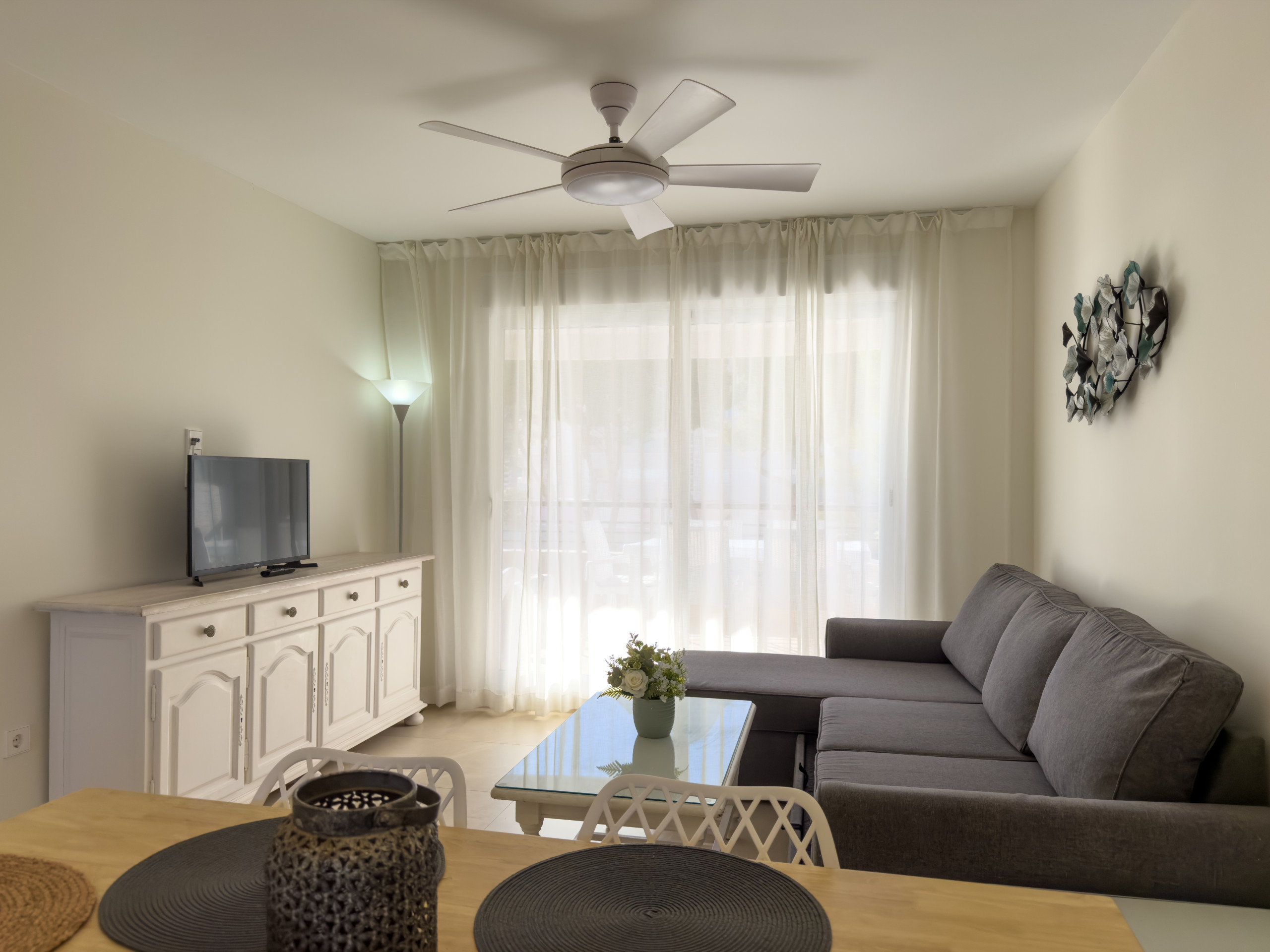 Que aunque estaba pegado a la playa, al paseo marítimo y a las terrazas, el apartamento era tranquilo y silencioso.